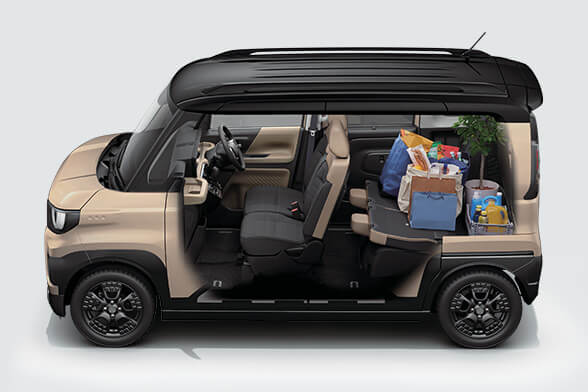 Description * デザイン、性能 ○ * ベッドキット必要 x 車名・型式 三菱・4AA-B38A グレード T Premium 駆動方式 4WD 発売年月 2023-05-01 価格_万円 223.90 ホイールベース 2495 全長mm 3395 全幅mm 1475 全高mm 1830 荷室幅mm 1335 荷室高mm 1390 重量g 1060 エンジン BR06 インタークーラー付ターボチャージャー 総排気量cc 659 燃料 無鉛レギュラーガソリン 燃料タンクL 27.00 燃費WLTC(kmL) 17.50 最小回転半径m 4.90 タイヤ 165/60R15 3 views 公式リンク https://www.mitsubishi-motors.co.jp/lineup/delica_mini/index.html 仕様書リンク https://www.mitsubishi-motors.co.jp/lineup/delica_mini/pdf/delica_mini.pdf 装備表リンク https://www.mitsubishi-motors.co.jp/lineup/delica_mini/pdf/delica_mini.pdf 環境性能リンク https://www.mitsubishi-motors.co.jp/lineup/delica_mini/pdf/delica_mini.pdf